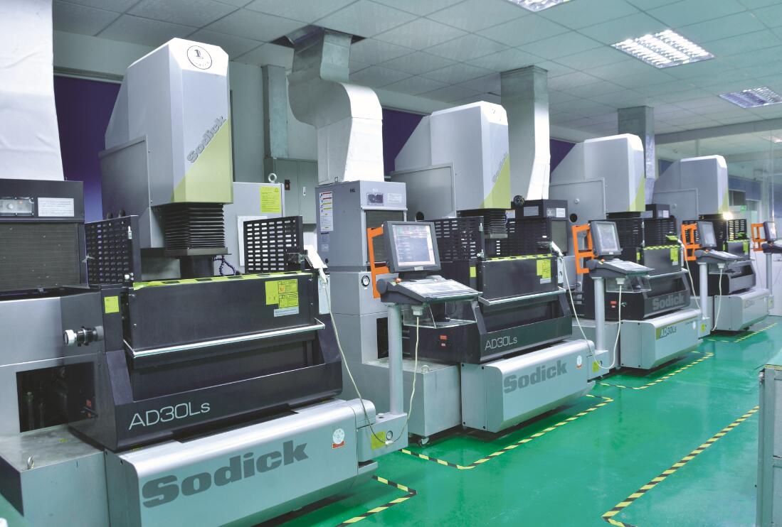 先后導(dǎo)入各種先進(jìn)的模具加工設(shè)備,如:阿奇夏米爾CTV1000油割機(jī), 米克朗加工中心,WAIDA光學(xué)研磨,西部及Sodick精密線切割機(jī), Sodick 鏡面火花機(jī),三井平面磨床,東芝超精密車床,長(zhǎng)島NC磨床等.
